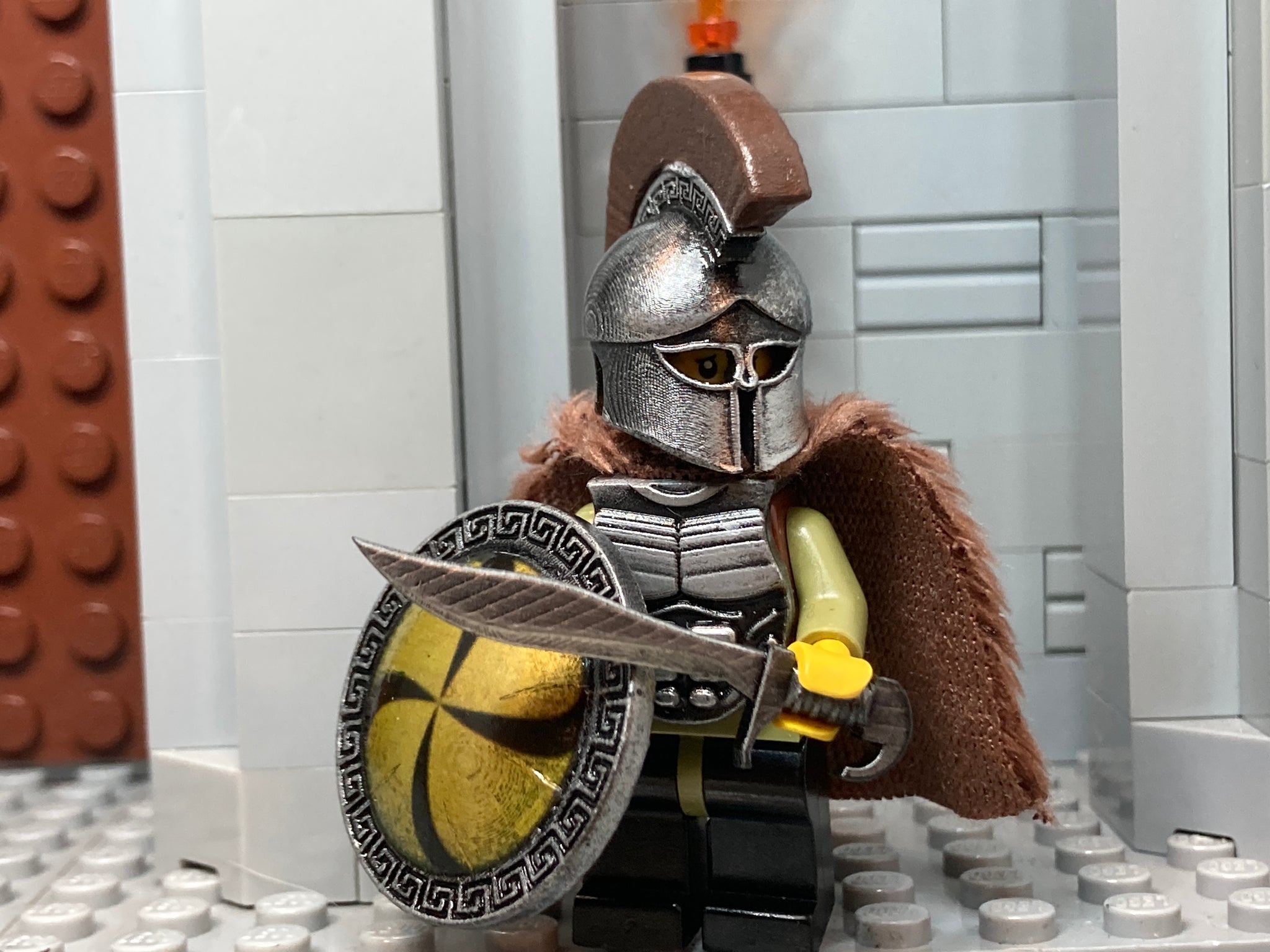 All Torso designs have been created electronically on Adobe Illustrator and other apps and generally based on historically accurate designs that have caught my eye. The weapons, shields, and helmets are custom classics typically produced by BrickForge, Brick Warriors, and others. Please see pics for details.
