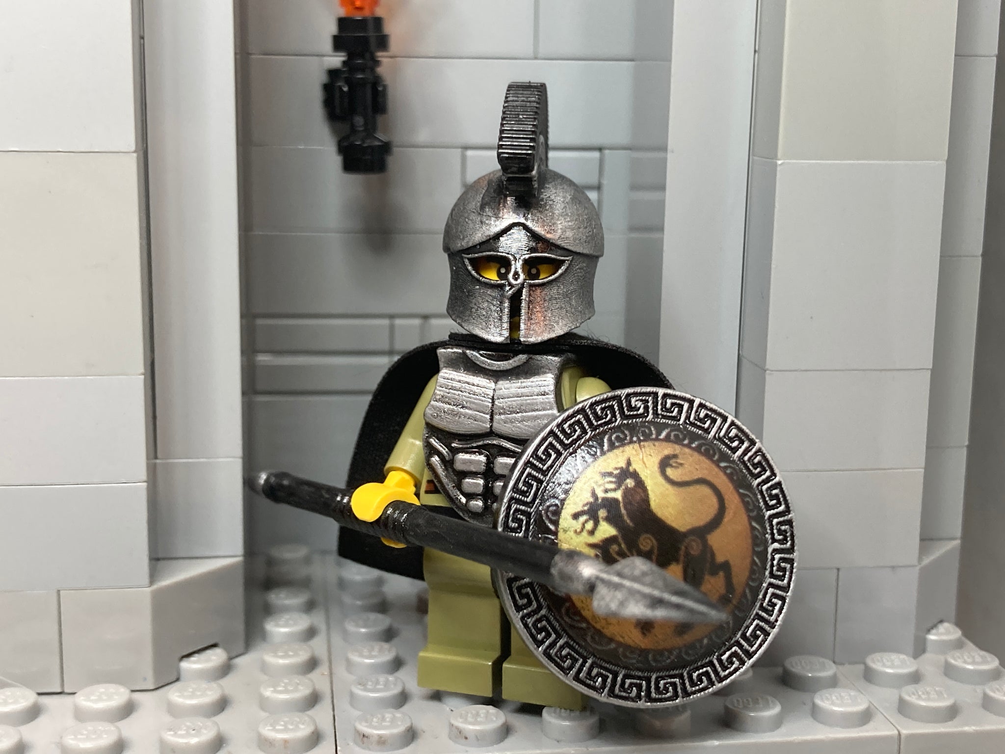 All Torso designs have been created electronically on Adobe Illustrator and other apps and generally based on historically accurate designs that have caught my eye. The weapons, shields, and helmets are custom classics typically produced by BrickForge, Brick Warriors, and others. Please see pics for details.